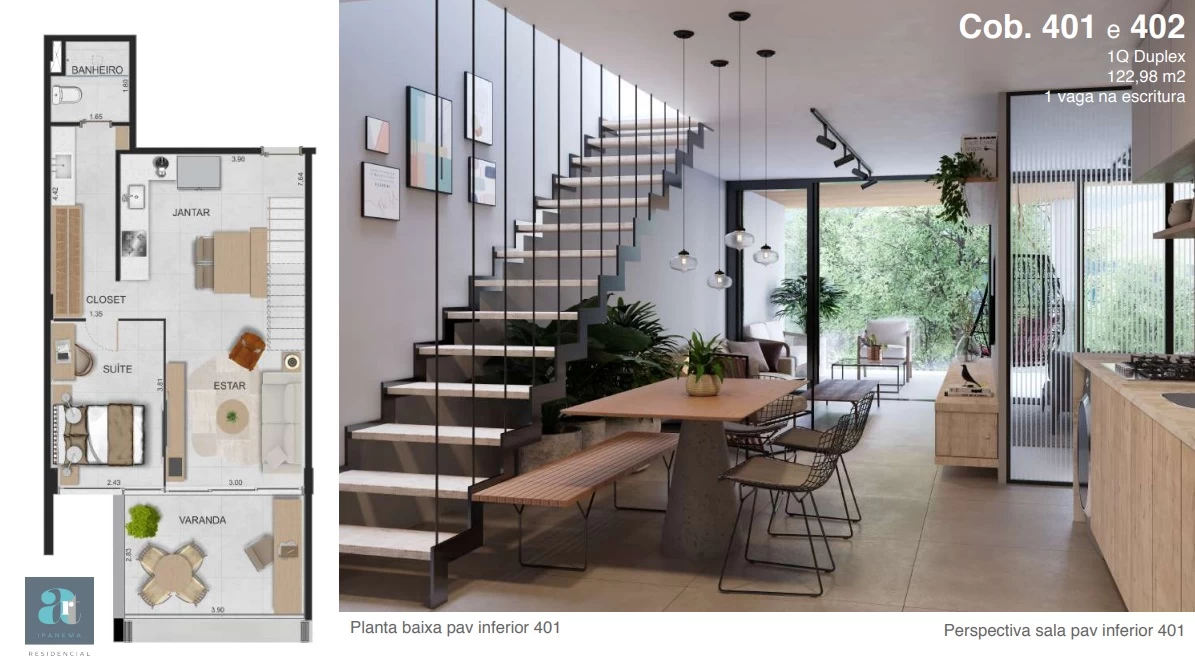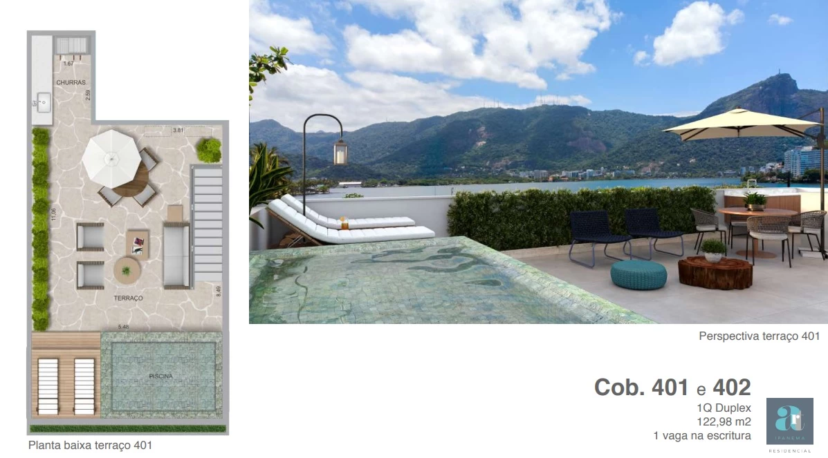 Coberturas quarto-sala com 122m².